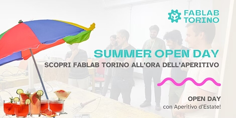 🏝️ Dalle 19:00 alle 21:00, FabLab Torino ti aspetta per un open day speciale. Questa volta, al termine del giro, non andate a casa! Fermatevi con noi per un aperitivo sotto il cielo estivo: snack e birrette 🍻 per tutti!