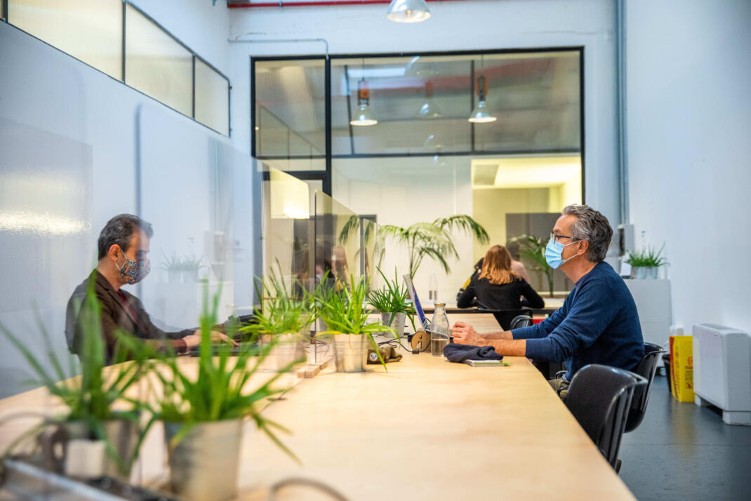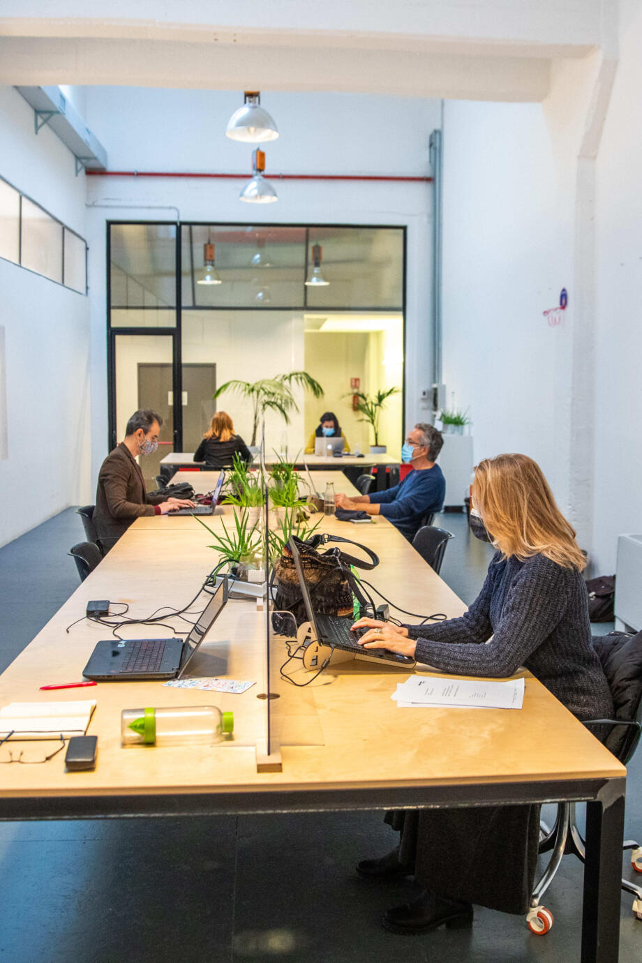 Shared spaces, plants and natural light, energy from renewable sources, filtered water and glass bottles for all Toolboxers.