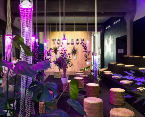 Shared spaces, plants and natural light, energy from renewable sources, filtered water and glass bottles for all Toolboxers.