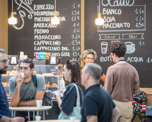 Cargobike for the coffee break, three equipped kitchens and always different menus with food trucks.