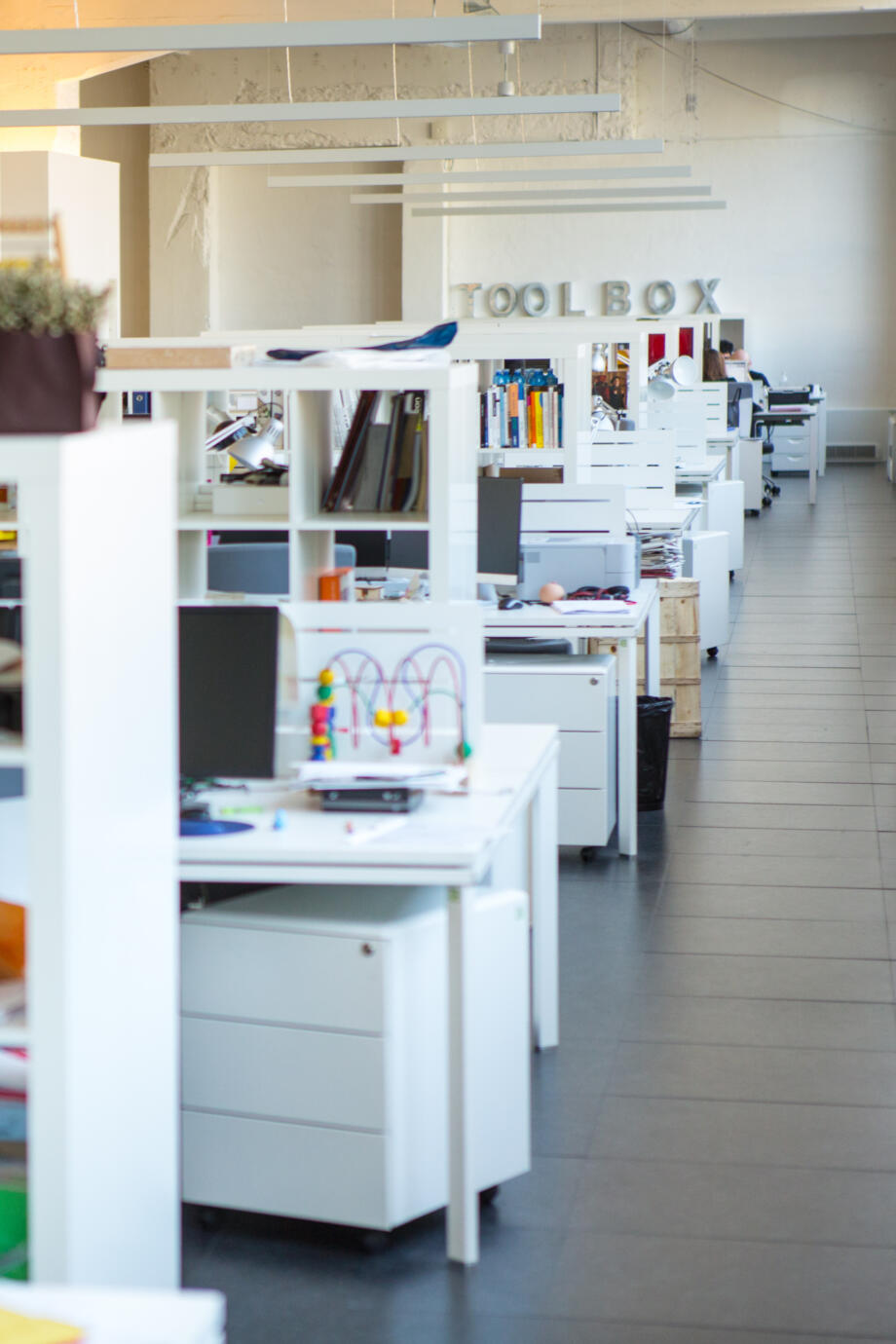 Shared spaces, plants and natural light, energy from renewable sources, filtered water and glass bottles for all Toolboxers.